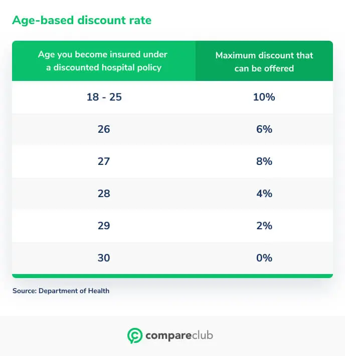 Age you become insured under a discounted hospital policy | Maximum discount can be offered |