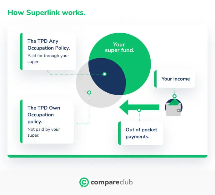 Keeps out-of-pocket expenses low: IP and TPD through superlink cuts down on your out-of-pocket expenses, as a portion of the payment is made using your superannuation fund contribution.