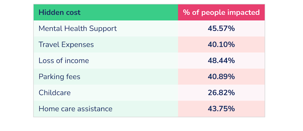 Most respondents cited loss of income, mental health support and home care assistance as the biggest hidden costs. This differs depending on demographic.